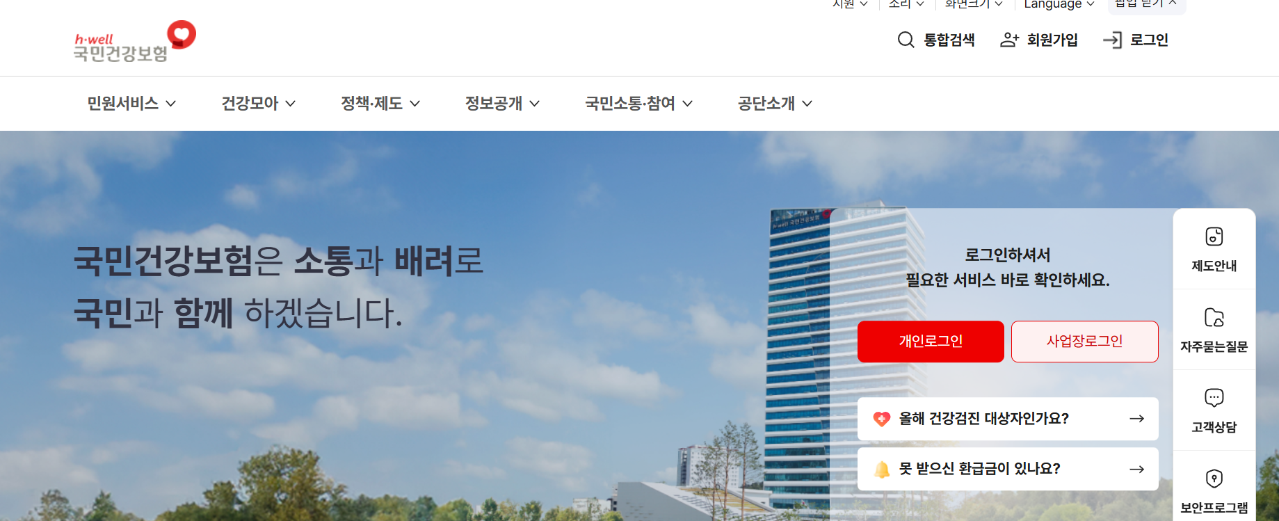 - 모바일 앱(예: 더건강보험 등)에서도 동일 메뉴 제공.