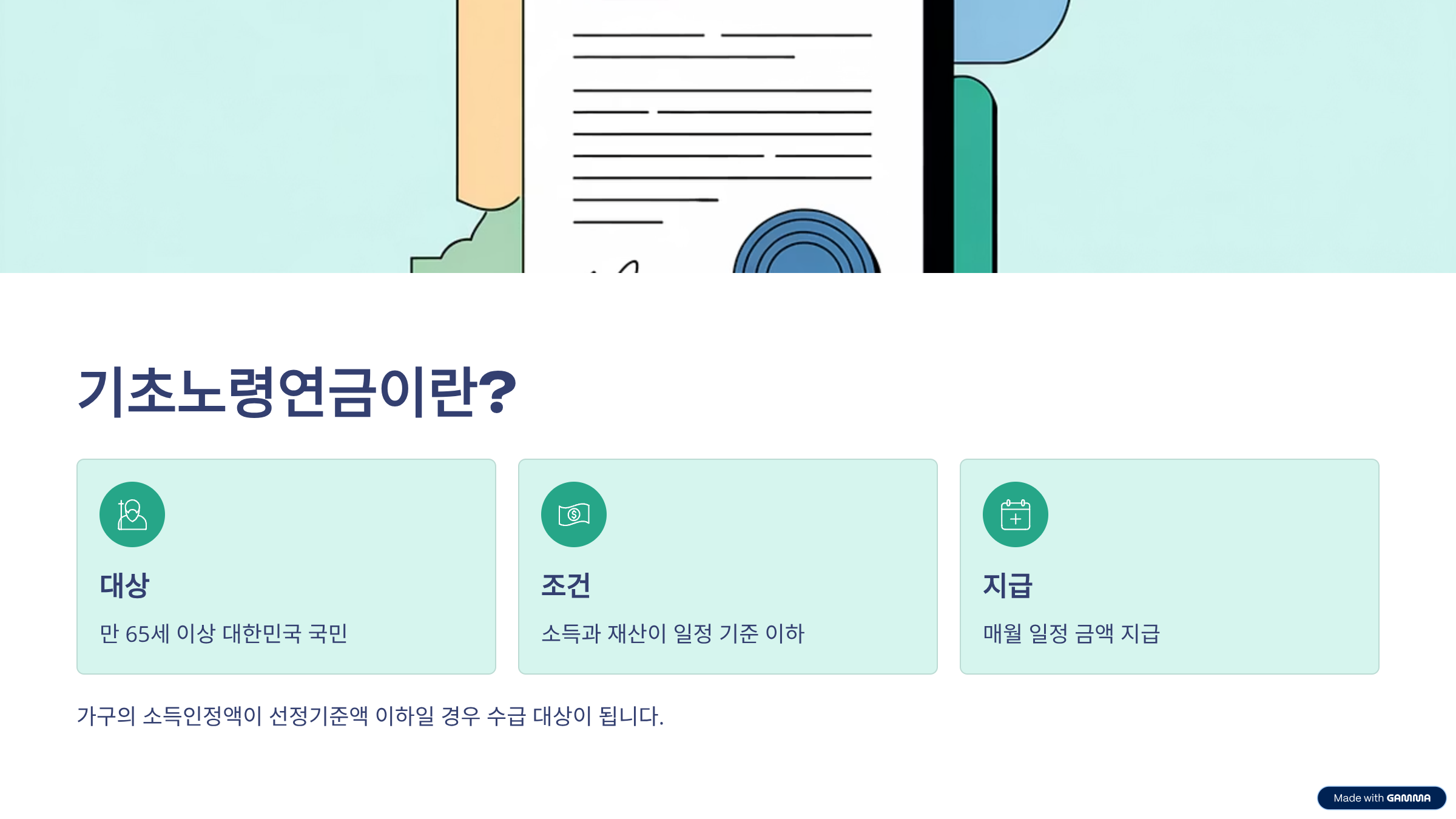 기초노령연금은 단순히 ‘혜택’이 아니라 어르신들의 안정적 노후 생활을 지원하기 위한 제도입니다. 만 65세 이상이라면 **지금 바로 신청자격 확인**해보시길 추천드려요.