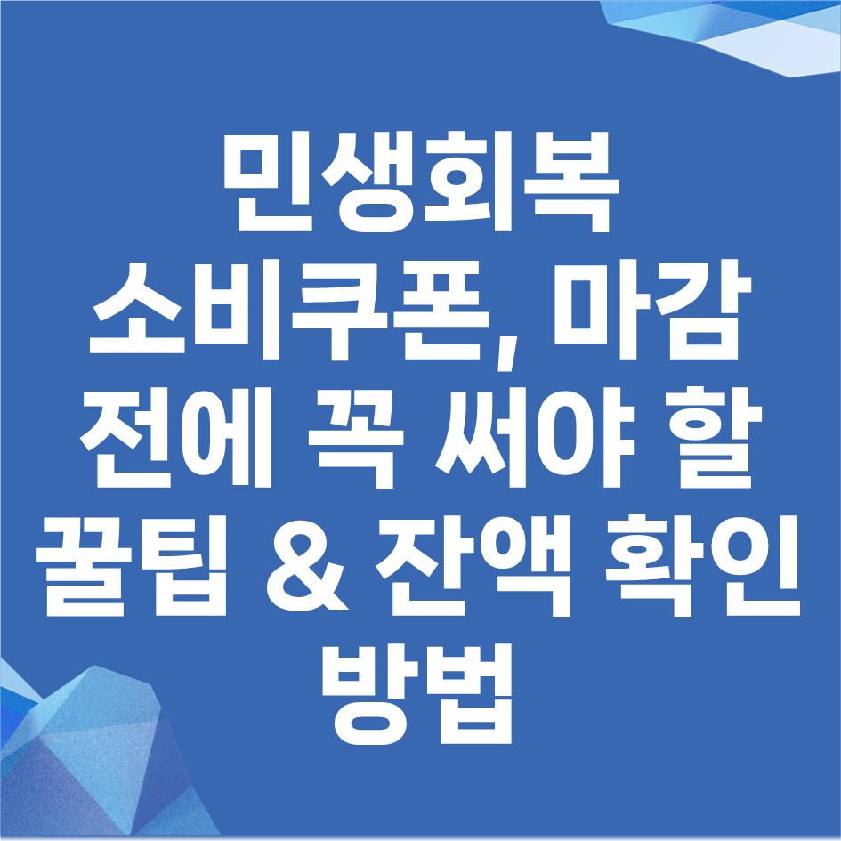 민생회복 소비쿠폰은 정부가 서민 생활 안정을 위해 마련한 소중한 제도입니다. 하지만 아무리 좋은 혜택도 제때 쓰지 않으면 소용이 없습니다.