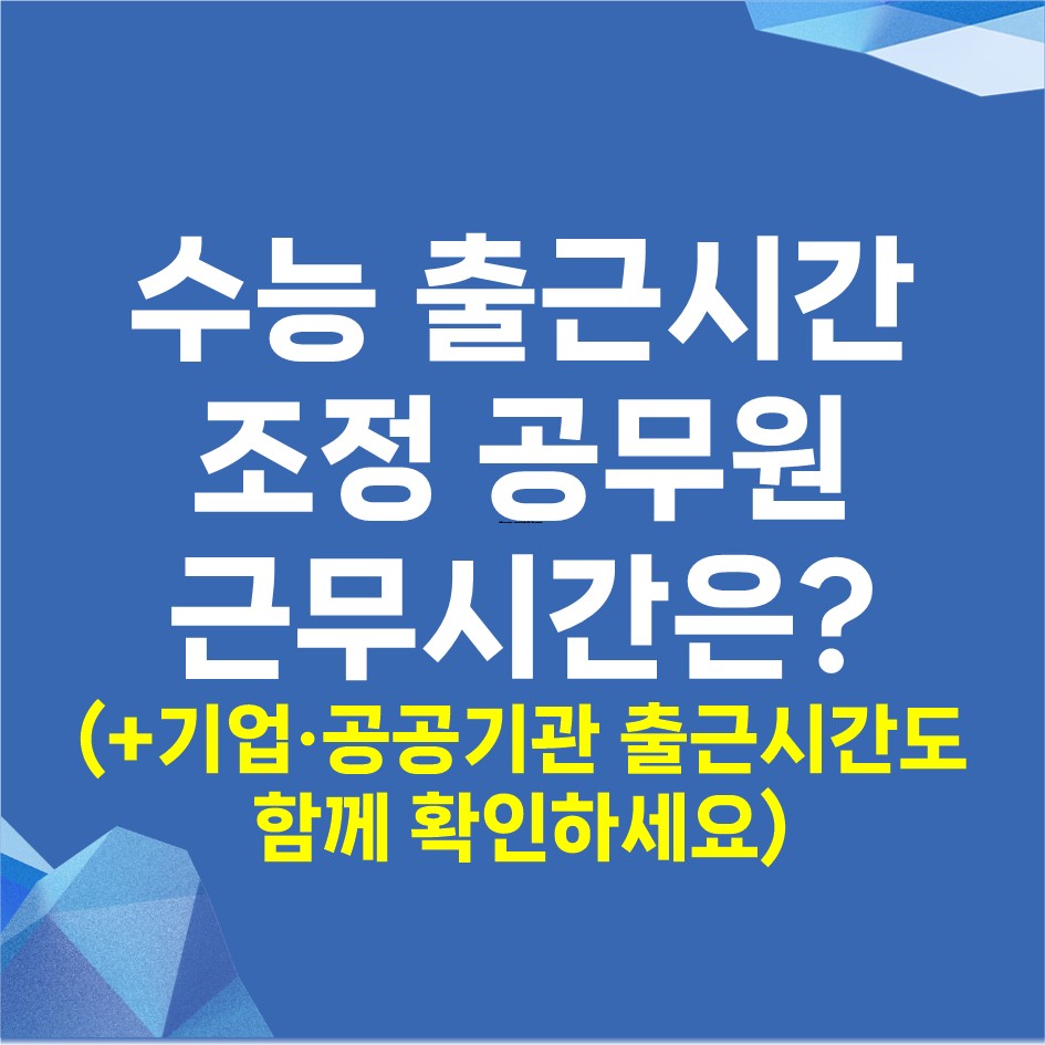 - 수능일에는 수험생 이동 편의를 위해 공무원 및 공공기관 출근시간이 오전 10시로 조정되는 경우가 많습니다.