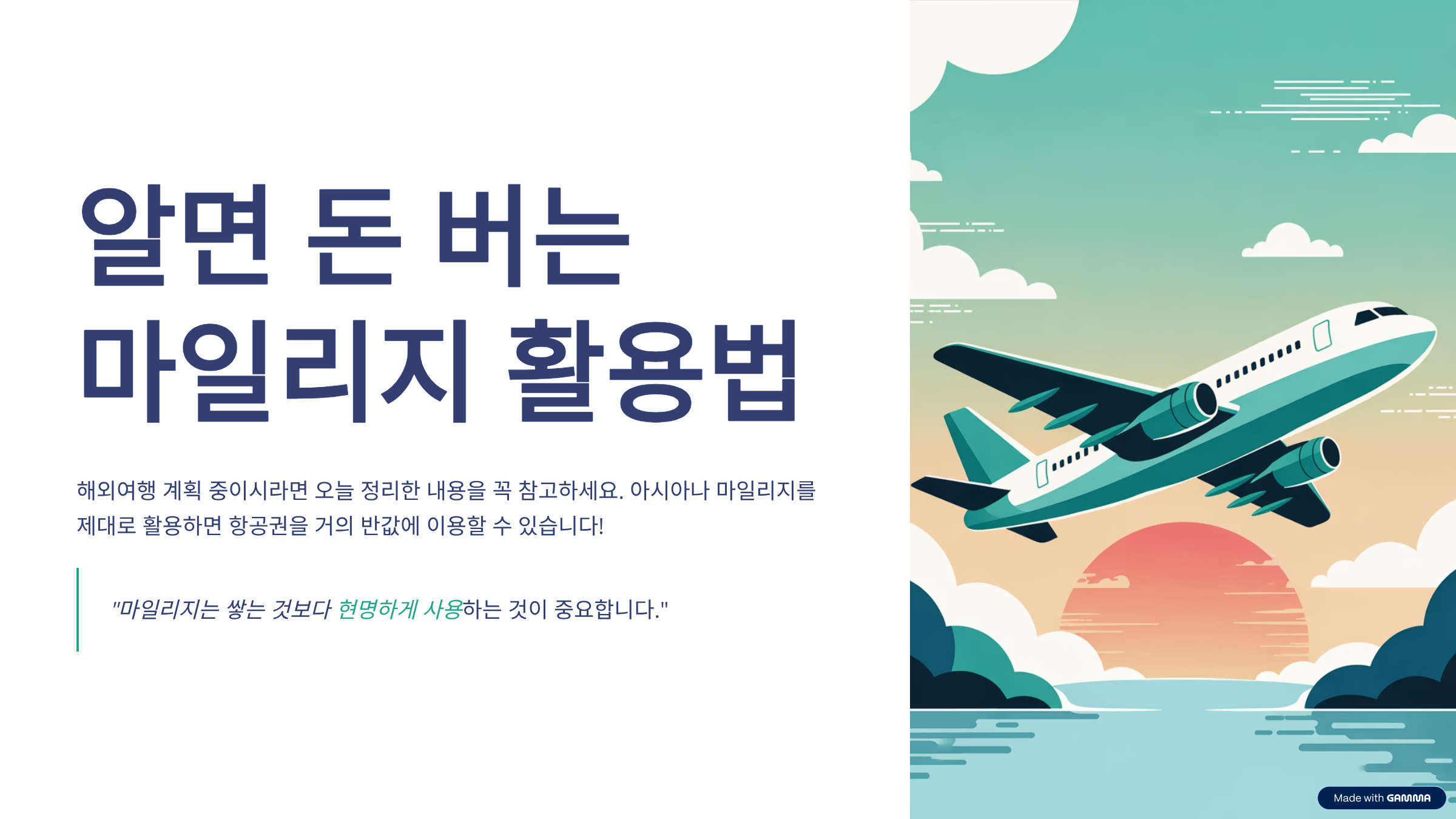 특히 항공권을 조금이라도 저렴하게 이용하고 싶다면 마일리지 활용은 필수입니다.