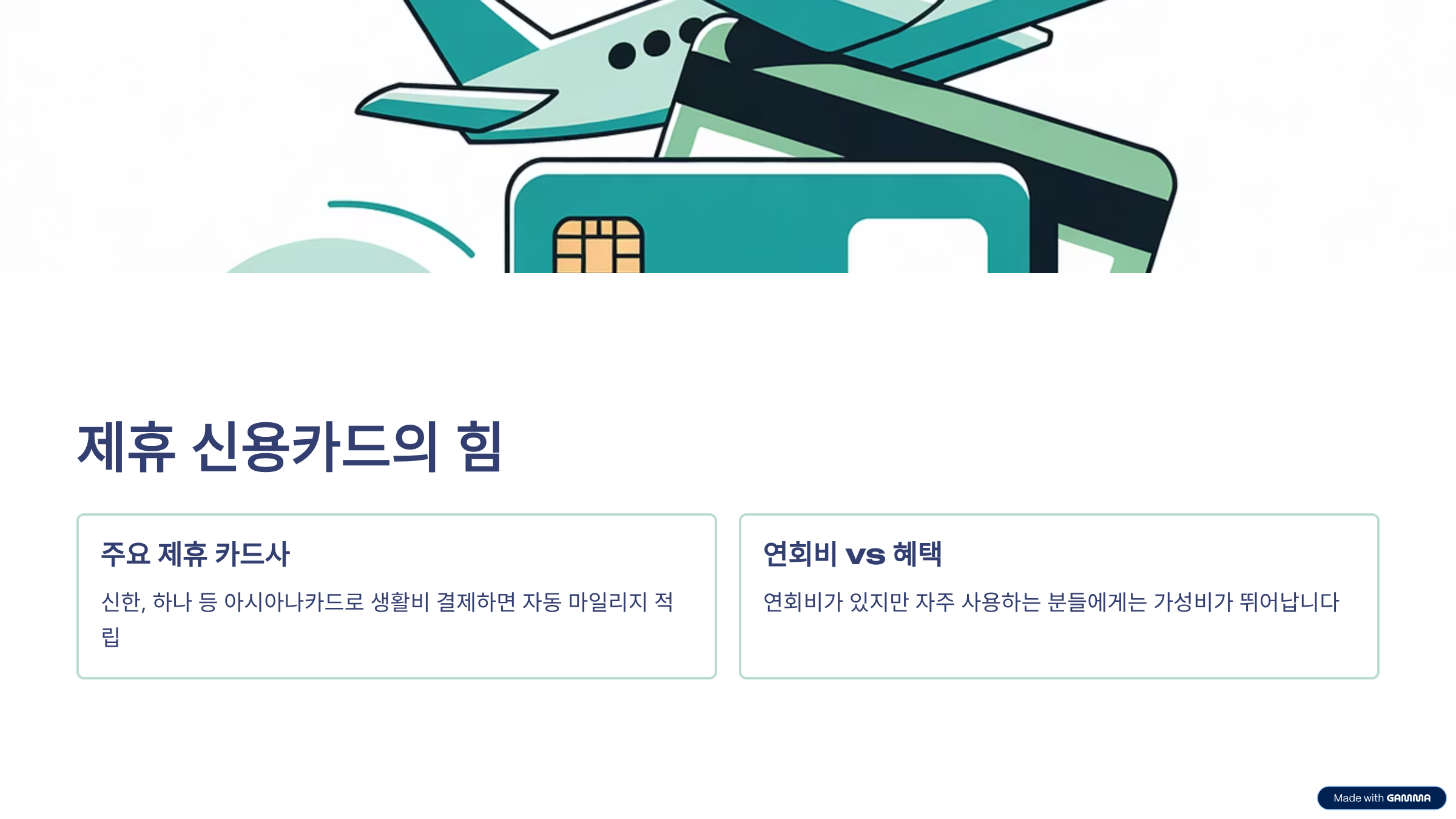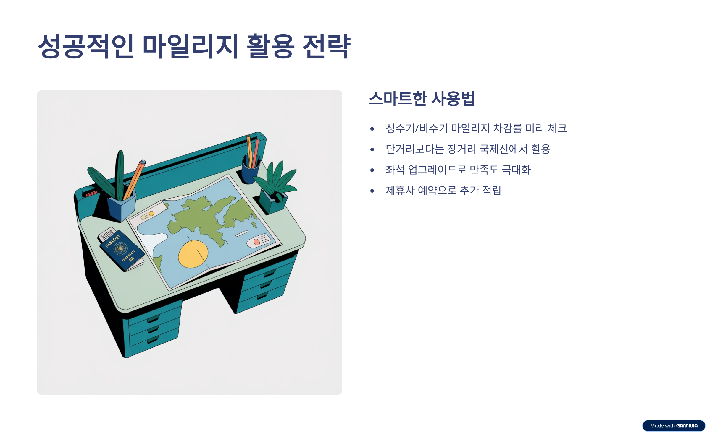✔ 제휴 신용카드로 생활비 결제 → 마일리지 자동 적립