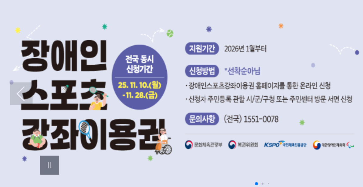 운동은 누구에게나 중요하지만 특히 장애가 있는 분들에게는 건강과 사회참여 측면에서 더 큰 의미가 있습니다. 장애인 스포츠강좌 이용권 바우처 제도는 그렇기에 **접근성을 높이고 참여 기회를 마련해 주는 제도**입니다. 지원대상, 신청방법, 지원내용을 미리 숙지해 두면 신청 후 이용까지 차질 없이 진행할 수 있어요. 신청해서 좋은 강좌 꼭 이용해 보시길 바랍니다!