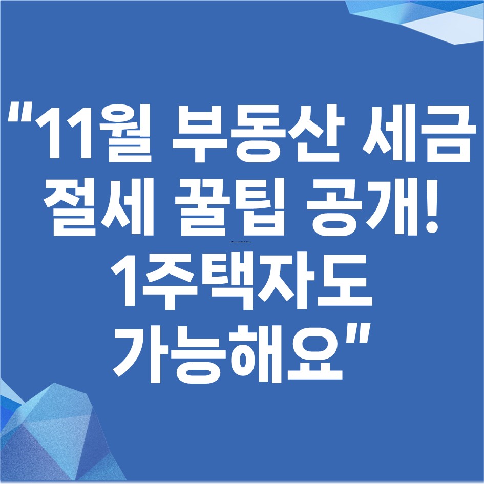 11월 부동산 세금 절세 꿀팁 공개! 1주택자도 가능해요